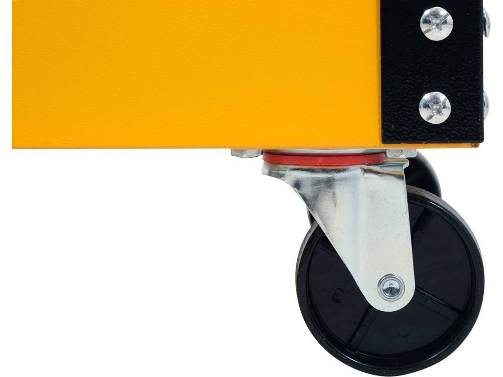 Серія GRF Розміри 775x760x355 мм матеріал сталева пластина Оздоблення поверхні порошкове покриття навантаження 120 кг Колеса ТАК Кількість коліс 4 Діаметр кола 75 мм Кількість полиць 3 Практичний трирівневий візок для майстерні вантажопідйомністю 120 кг. Завдяки йому необхідні для роботи інструменти завжди під рукою. 2 фіксованих колеса 2 поворотних колеса зі сталі порошкове покриття