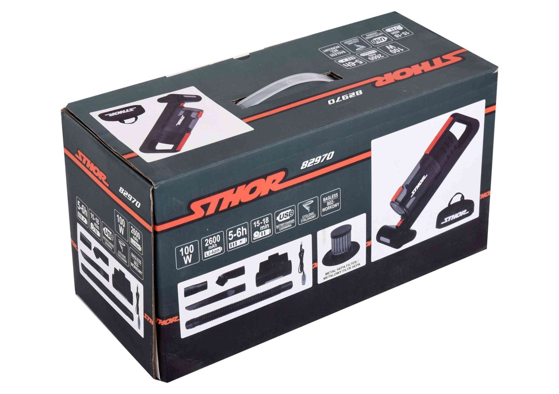 Порохотяг автомобільний акумул. STHOR: Li-Ion 11В 2.6 Агод, 100Вт, фільтр HEPA + насадки + сумка [9]