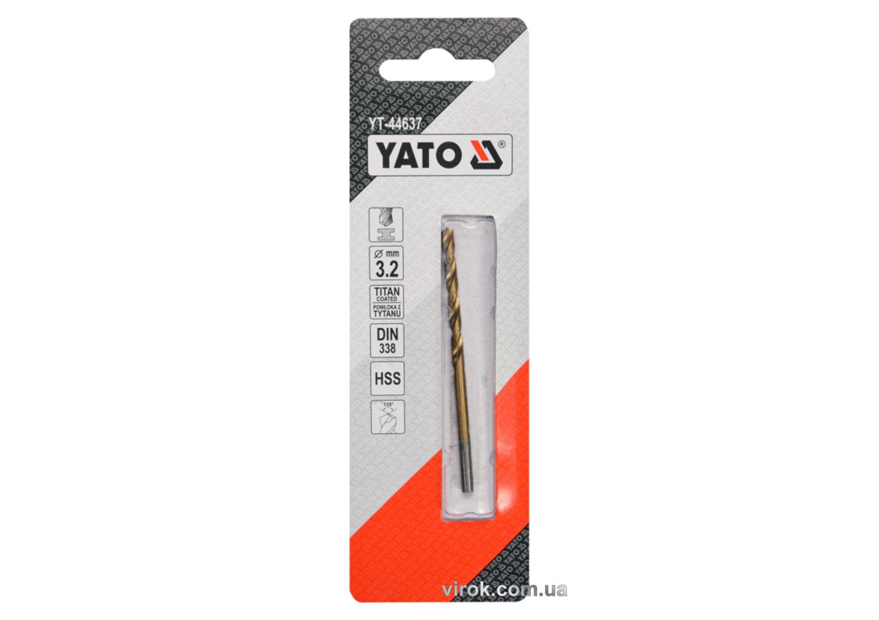 Свердло по металу титанове YATO : HSS-TIN, Ø= 3.2 мм, l= 65/36 мм [50/500]