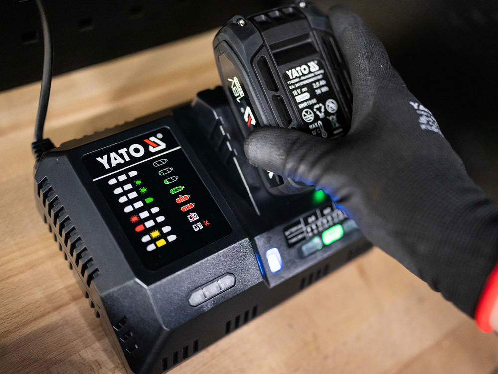 Зарядний пристрій розумний з охолодженням швидк YATO для акумул. Li-Ion 18 В, 12 А від мережі 230 B