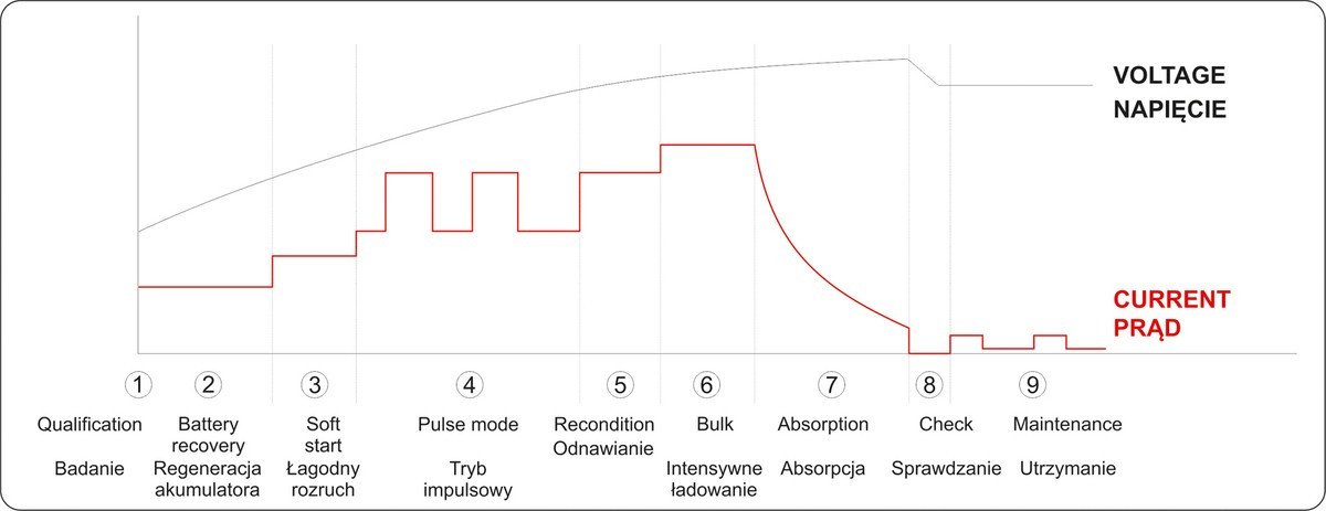 Зарядний прилад мережевий з LCD дисплеєм 230В YATO до акумуляторів 12V-2/8/15А, макс. 240AГод [8]