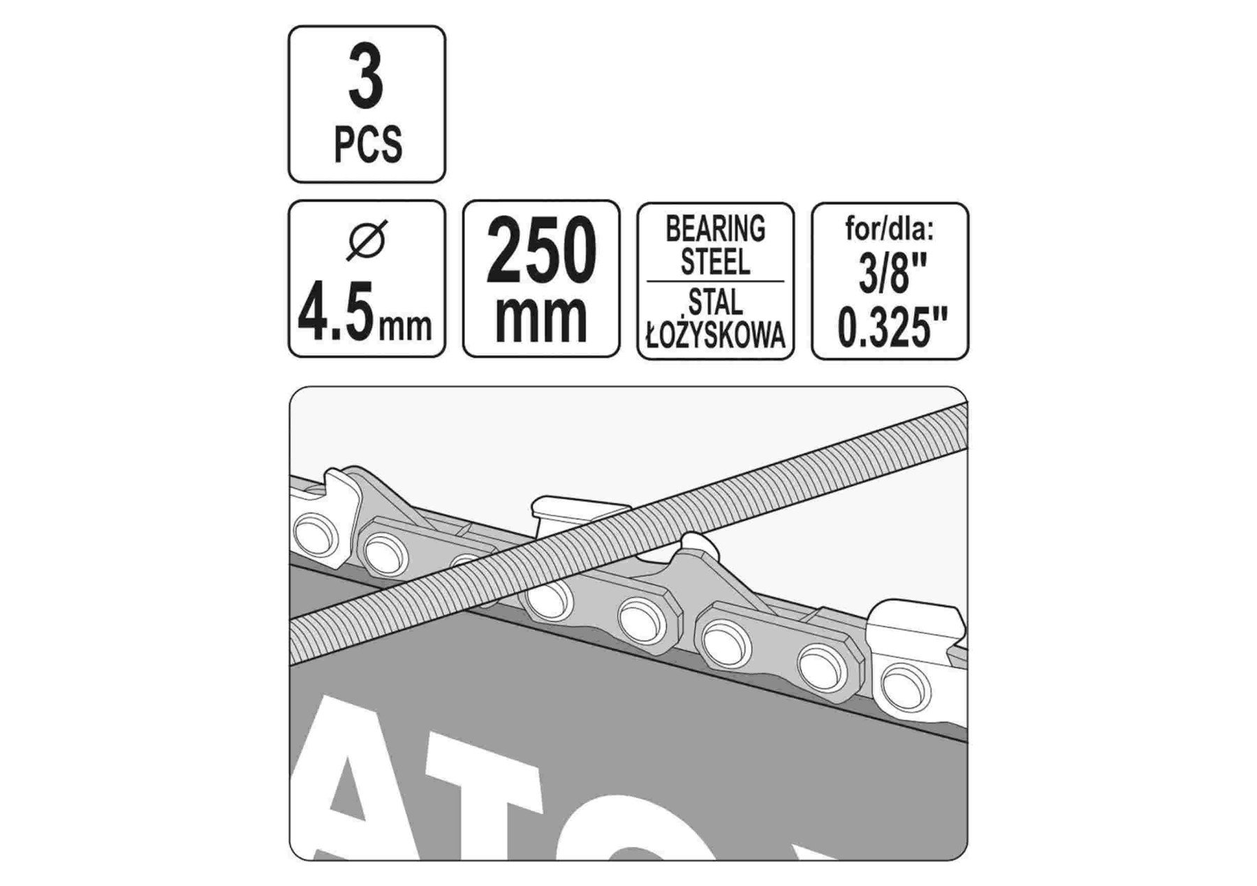 Напильники для гостріння ланок ланцюгів YATO, Ø= 4.5 мм, l= 250 мм, 3 шт. [4/200]