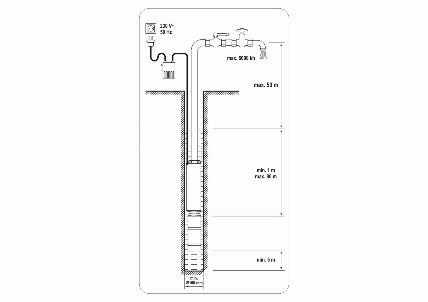 Насос для води глибинний YATO: 550Вт, 6000л/год, макс.висота- 50м, макс.глибина- 80м, кабель-20м [1]