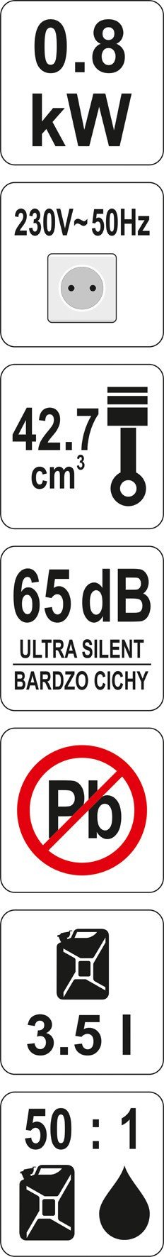 Генератор струму бензиновий інверторний YATO: P=800/880 Вт, U=230 В, витрата- 0.75 л/г, бак- 3.5л