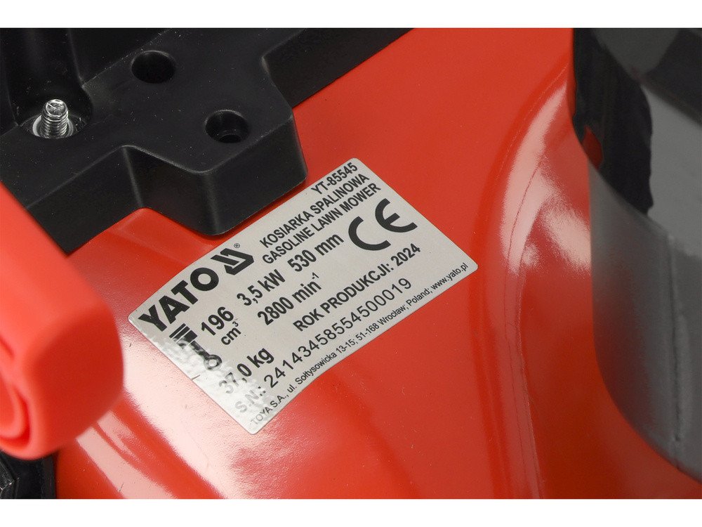 Газонокосарка бензинова YATO з приводом: 3,5кВт, ширина різання: Ø= 53 см, травозбірник- 62л