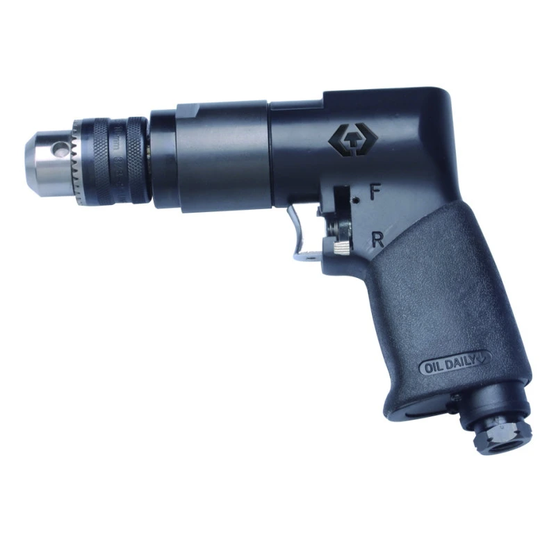 Дрель пневматическая с реверсом 3/8" – слесарный ручной инструмент для высверливания отверстий в металле, пластике и в прочих твердых материалах. Приспособление используется для устранения дефектных компонентов резьбового соединения и прочих элементов крепежа в неразборных конструкциях. Пневматическая дрель – инструмент для автосервиса или предприятия, использующего профессиональное оборудование, работающее на сжатом воздухе.