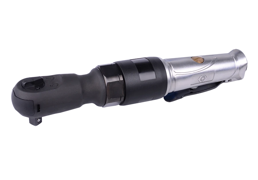 Пневматична тріскачка 3/8" 108 Нм King Tony (37334-080) – це ручний інструмент для роботи з елементами різьбового з'єднання. Тріскачка орієнтована на автосервіс та виробництво. Приводом для обертання валу є енергія стисненого повітря. Купити пневматичну тріскачку Кінг Тоні за найкращою ціною Це чудовий ручний інструмент під торцеві головки із посадковим квадратом 3/8 дюйма. Мала вага, компактні розміри, зручність хвату. Навіть ціна порадує слюсаря, якому часто доводиться працювати з елементами кріплення. Особливість пневматичної тріскачки King Tony (37334-080) у конструкції. Інструмент призначений для одноручної роботи. Усі елементи керування знаходяться під рукою. Корпус тріскачки захищений від попадання пилу та бруду. Конструкція інструменту розбірна, що обслуговується. Надлишки повітря прямують убік (за рахунок роботи вбудованої витяжки). Технічні характеристики пневотріскачки King Tony (37334-080): Посадковий квадрат – 3/8 дюйми. Крутячий момент – до 108 Нм. Вільне обертання валу – 210 об/хв. Робочий тиск – 6.2 Бар. Витрата повітря – до 127 л/хв. Підключення до системи – штуцер 3/8 дюйми. Довжина тріскачки – 268 мм. Рівень шуму – 93 дБ. Вага інструменту – 1.25 кг.