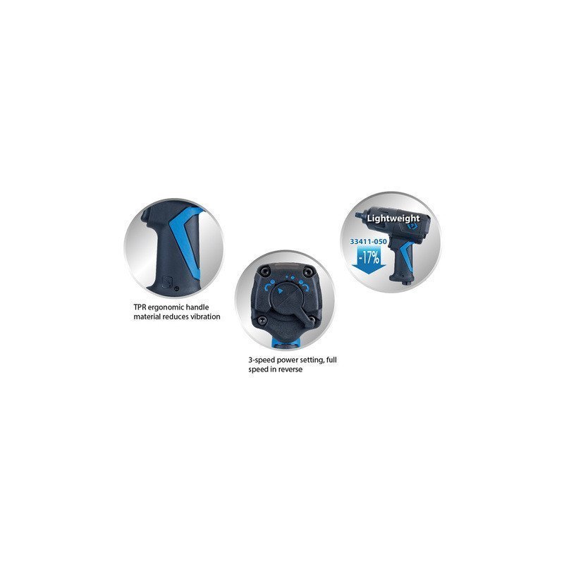 Пневматичний гайковерт 1/2" 1356 Нм King Tony (33461-100) - це ударний ручний інструмент для відкручування або закручування гайок і болтів. Працює слюсарна оснастка за рахунок енергії зжитого повітря, що надходить від компресора. Орієнтований гайковёрт.