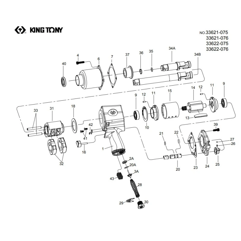 Ремкомплект для гайковерта 33621-075, комплект (4 (4 шт), 7,10,21,22,23,26,27) KING TONY 33621-BTK
