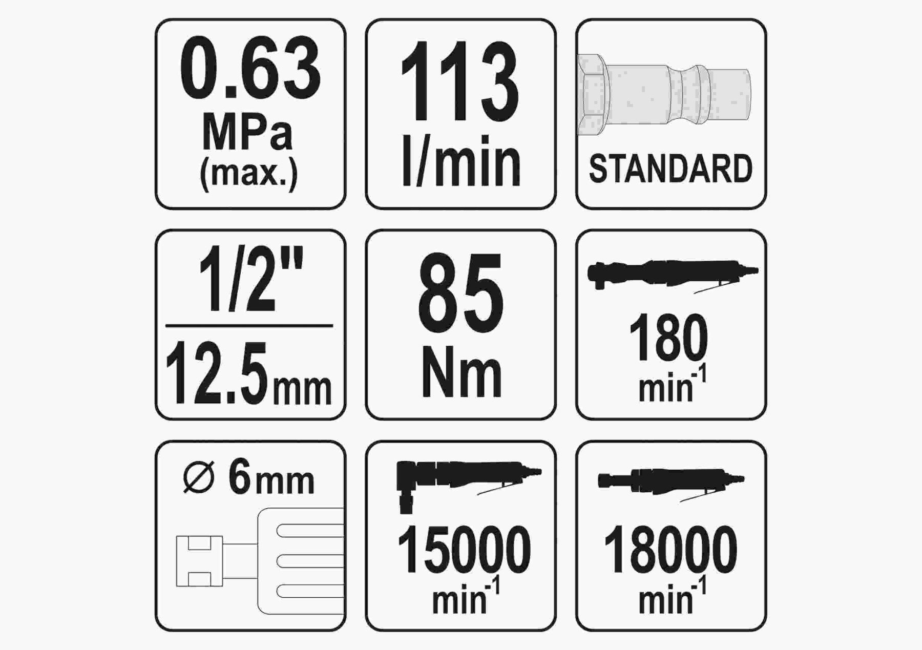 Технічні характеристики Пневматичного інструмента 3 в 1 YATO YT-09860