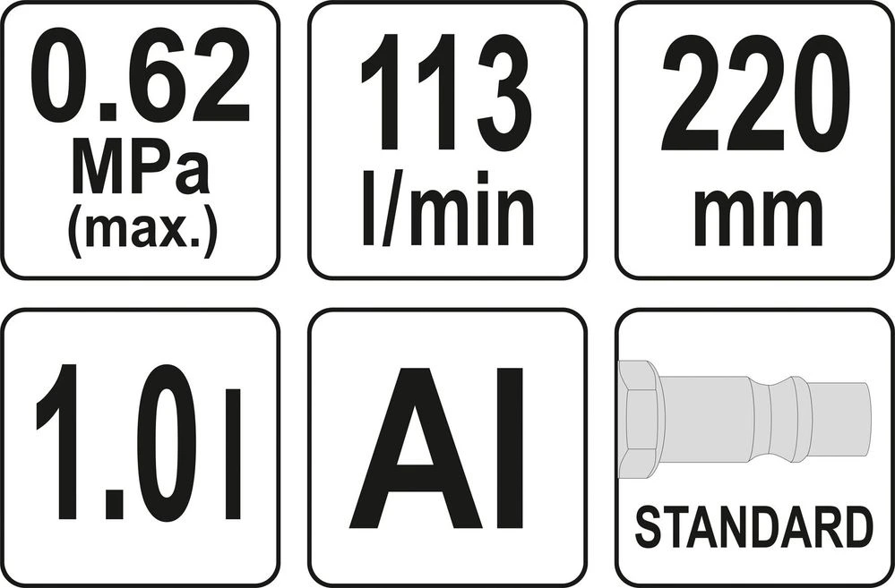 YATO Пістолет пневматичний для утворення піни : бак- 1 л, сопло- 220 мм, 113 л/хв, 0.62 МПа