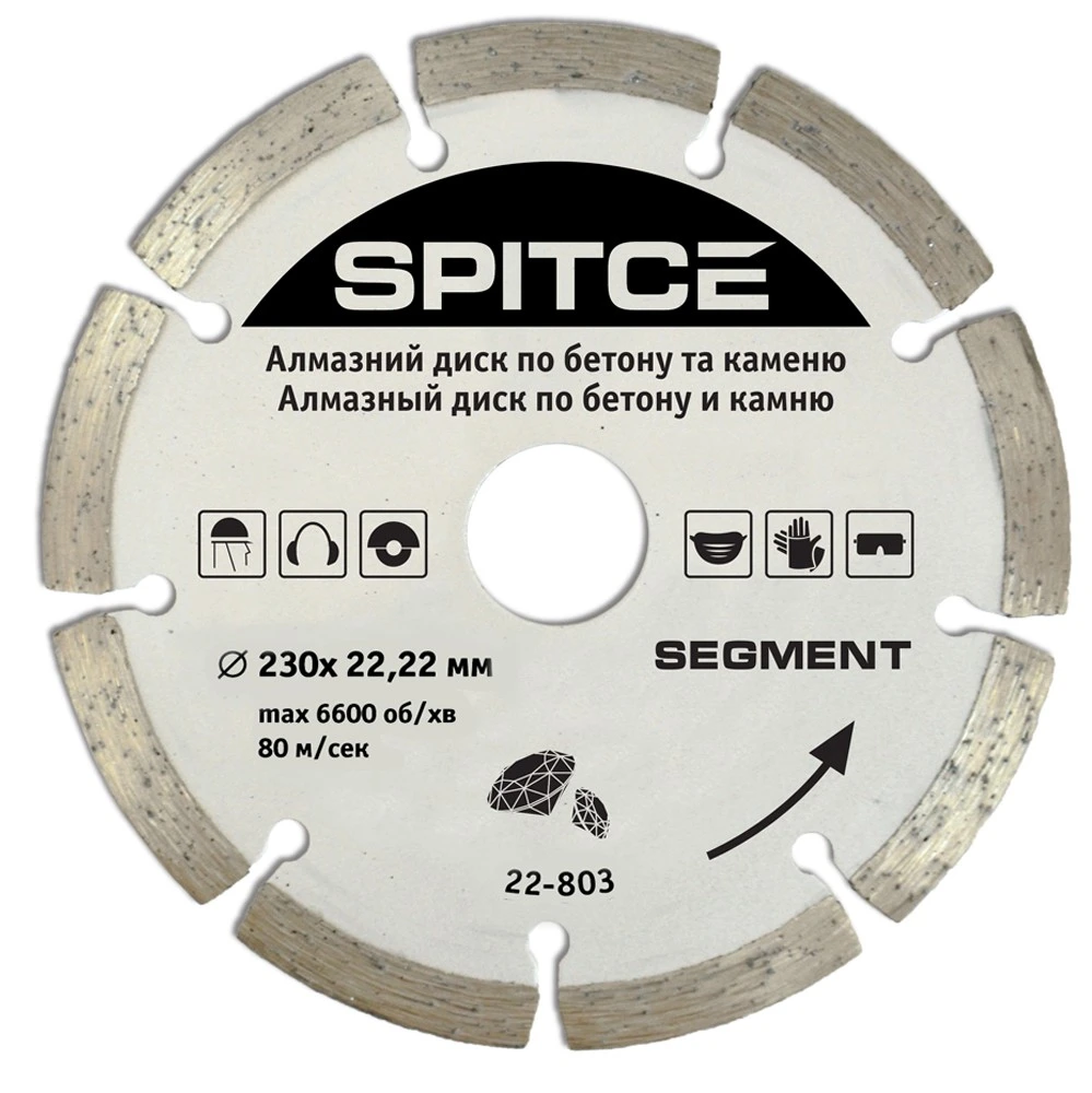 Алмазний диск 'SEGMENT' призначений для швидкого різання бетону, цегли та каменю. Завдяки сегментам диск під час роботи краще охолоджується повітрям, тому його можна використовувати для сухого різу. Сегментні диски найкраще підходять для робіт з бетоном.