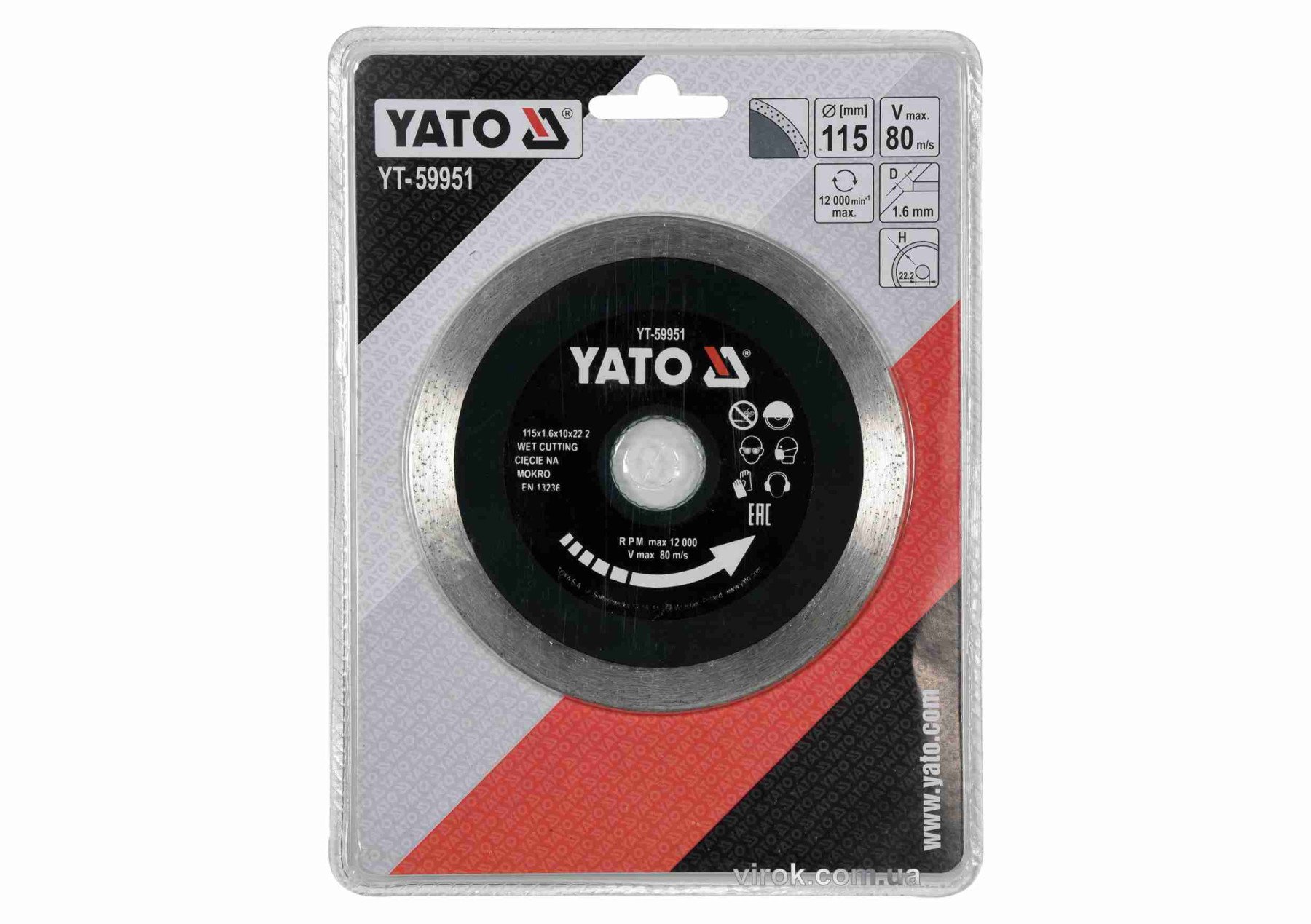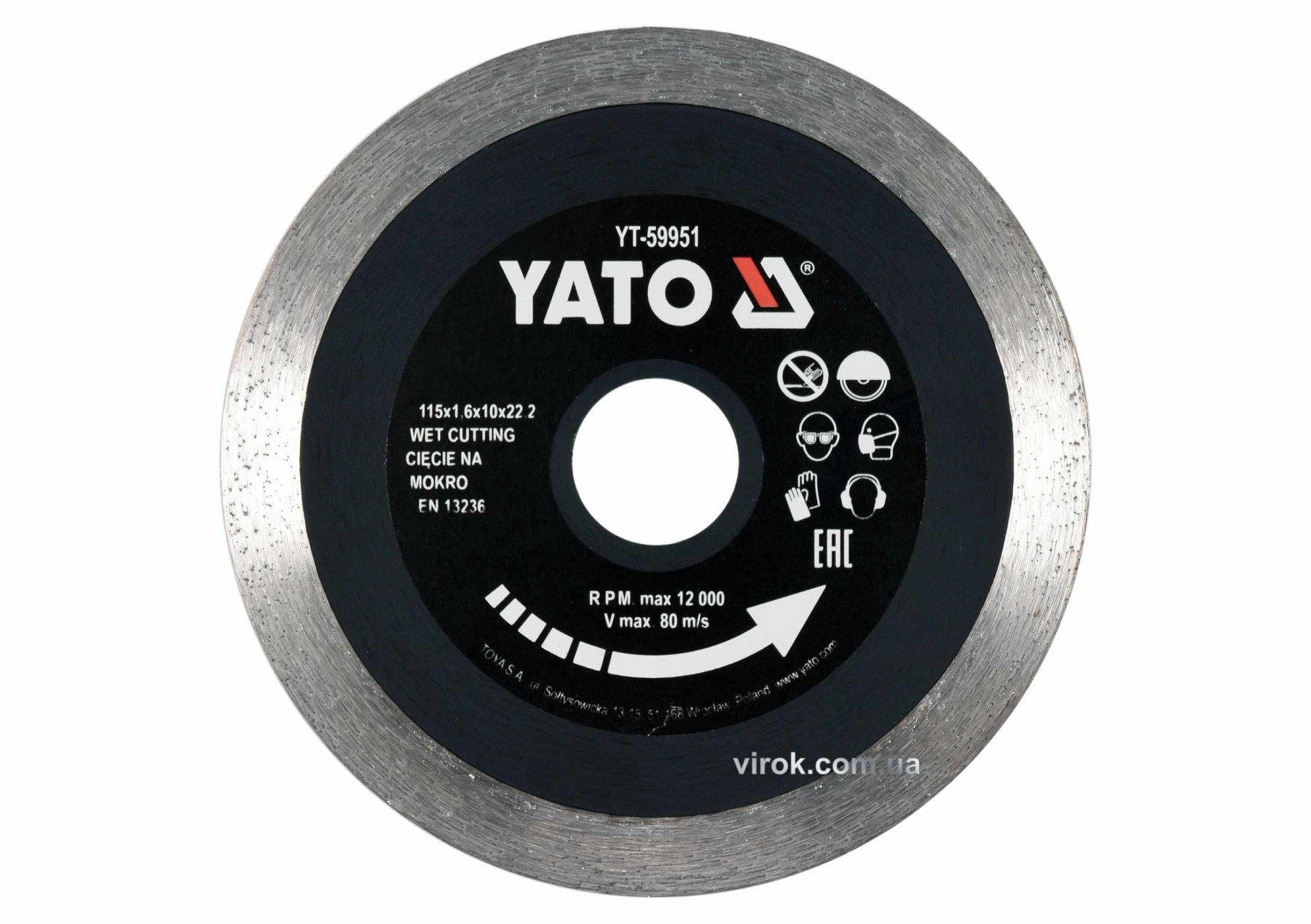 YATO Диск відрізний алмазний по гресу, склу, кераміці Ø=115х1.6х10х22.2 мм,в мокрому режимі