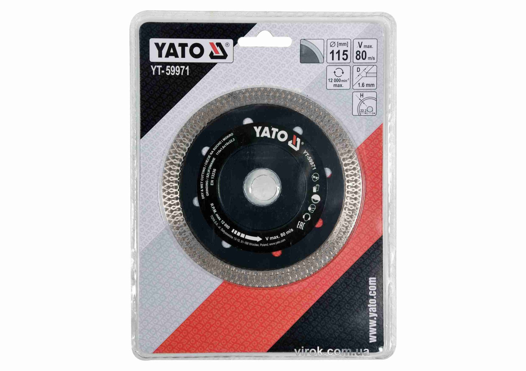 YATO Диск відрізний алмазний по гресу, склу, кераміці Ø=115x1.6x10x22.2 мм,в мокрому і сухому режимі