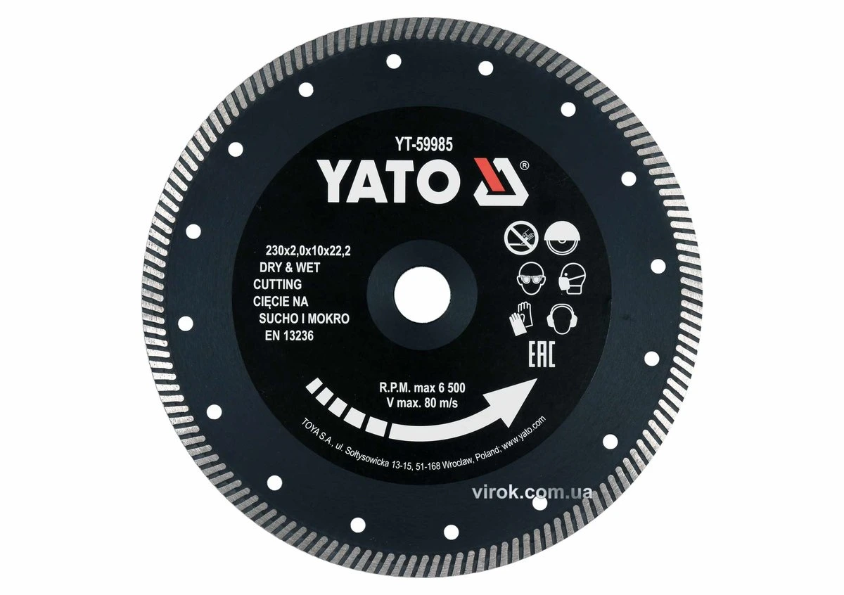 YATO Диск відрізний алмазний по гресу, кераміці "TURBO" Ø=230x2x10x22.2 мм,в мокрому і сухому режимі