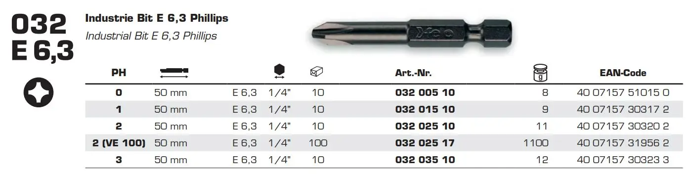 Бита FELO ( ФЕЛО ) PH2х50 мм, 1/4, С 6.3, машинная