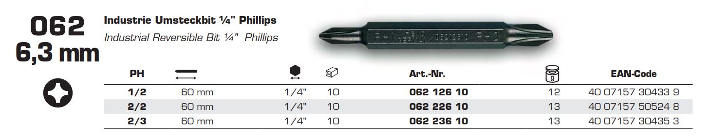 Бита FELO ( ФЕЛО ) двусторонняя PH2/PH2х60 мм, 1/4, С 6.3.