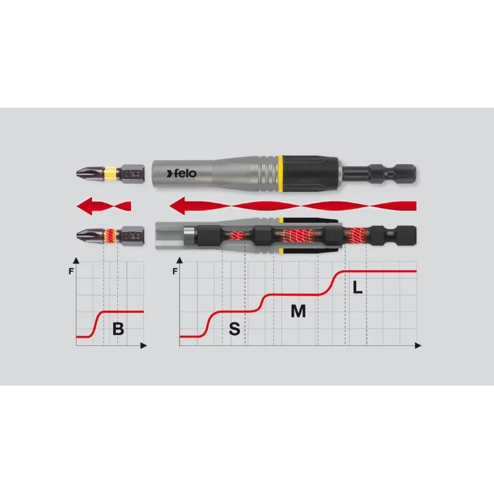 Держатель бит магнитный FELO IMPACT 1/4х95 мм, форма E 6,3, стопорное кольцо, под ударные инструменты, блистерная упаковка, ИР (03829594)