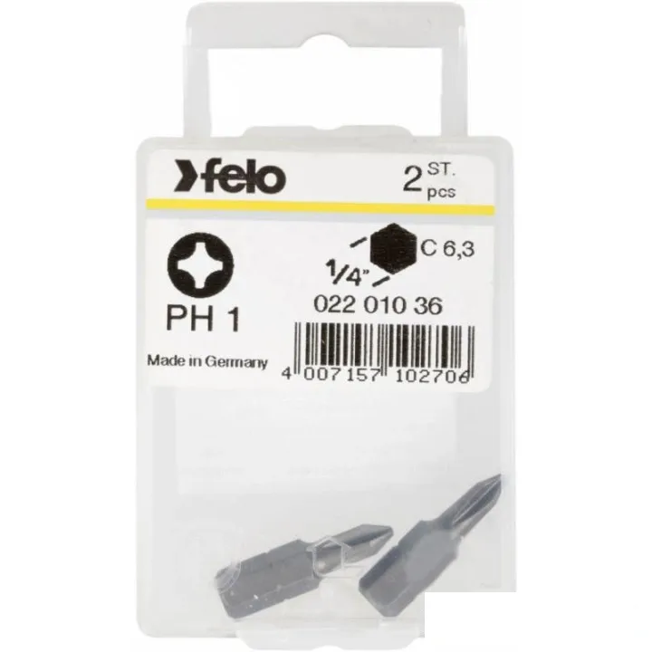 Бита FELO INDUSTRIAL PH1x25 мм, шестигранный хвостовик 1/4, форма С 6,3, блистер 2 шт (02201036)