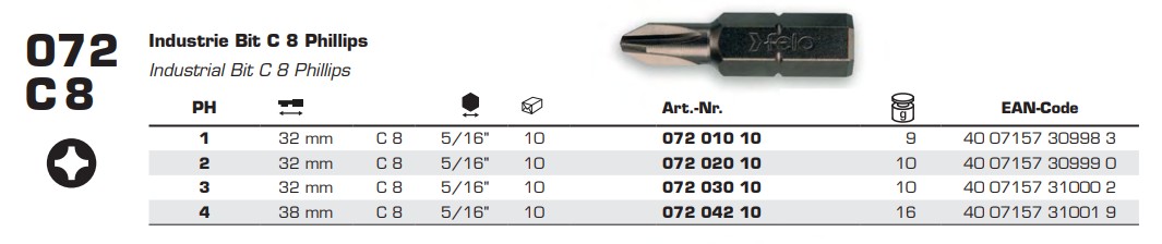 Бита FELO ( ФЕЛО ) PH4х38 мм, 5/16, C 8
