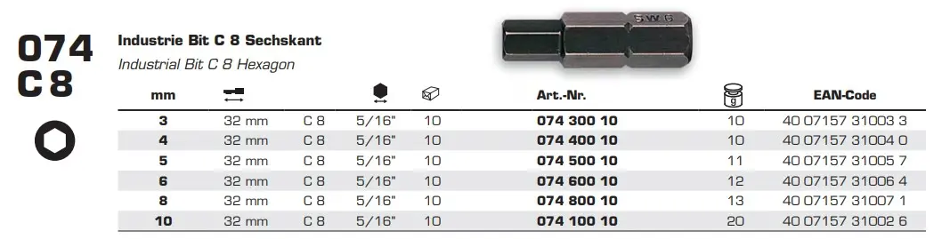 Біта FELO SW 8,0х32 мм INDUSTRIAL (07480010)
