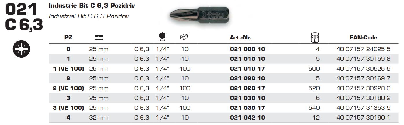 Бита FELO ( ФЕЛО ) PZ2х25 мм, 1/4, С 6.3