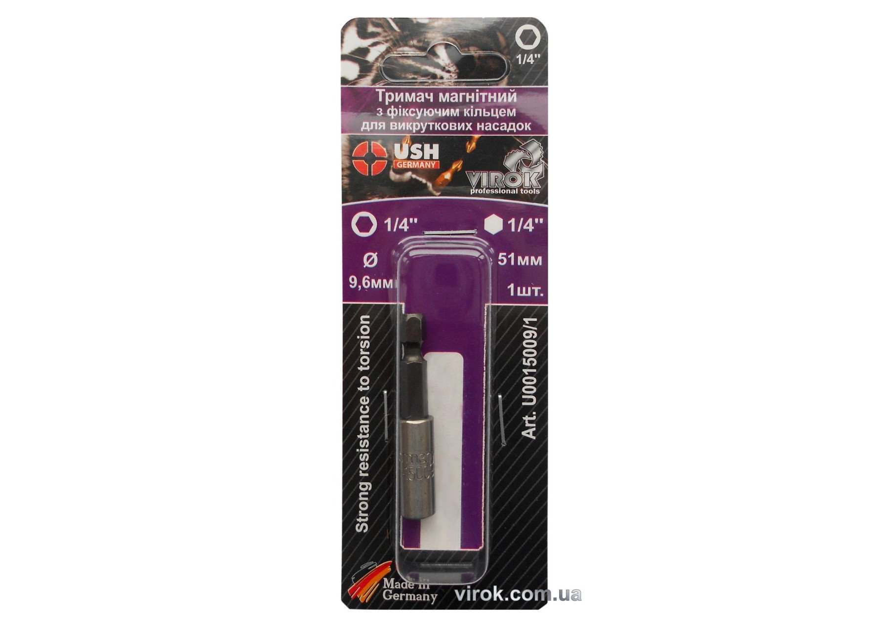 USH Тримач магнітний насадок викруткових 1/4", L=51 мм, Ø= 9,6мм з кільцем 1 шт.(блістер) | U0015009/1