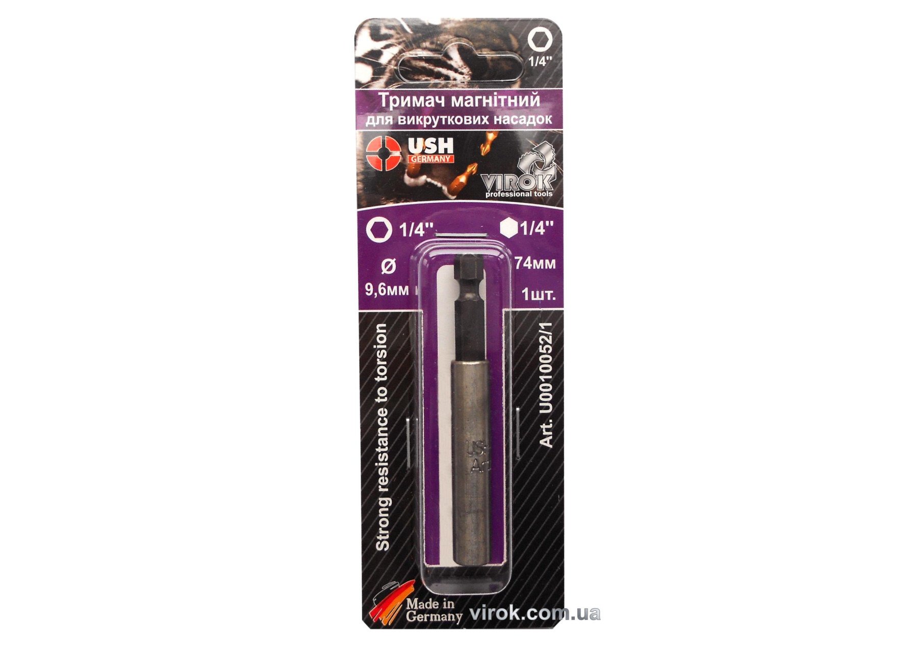USH Тримач магнітний насадок викруткових 1/4", L=74 мм, зовніш. Ø=9,6 мм, Уп. 1 шт., блістер | U0010052/1