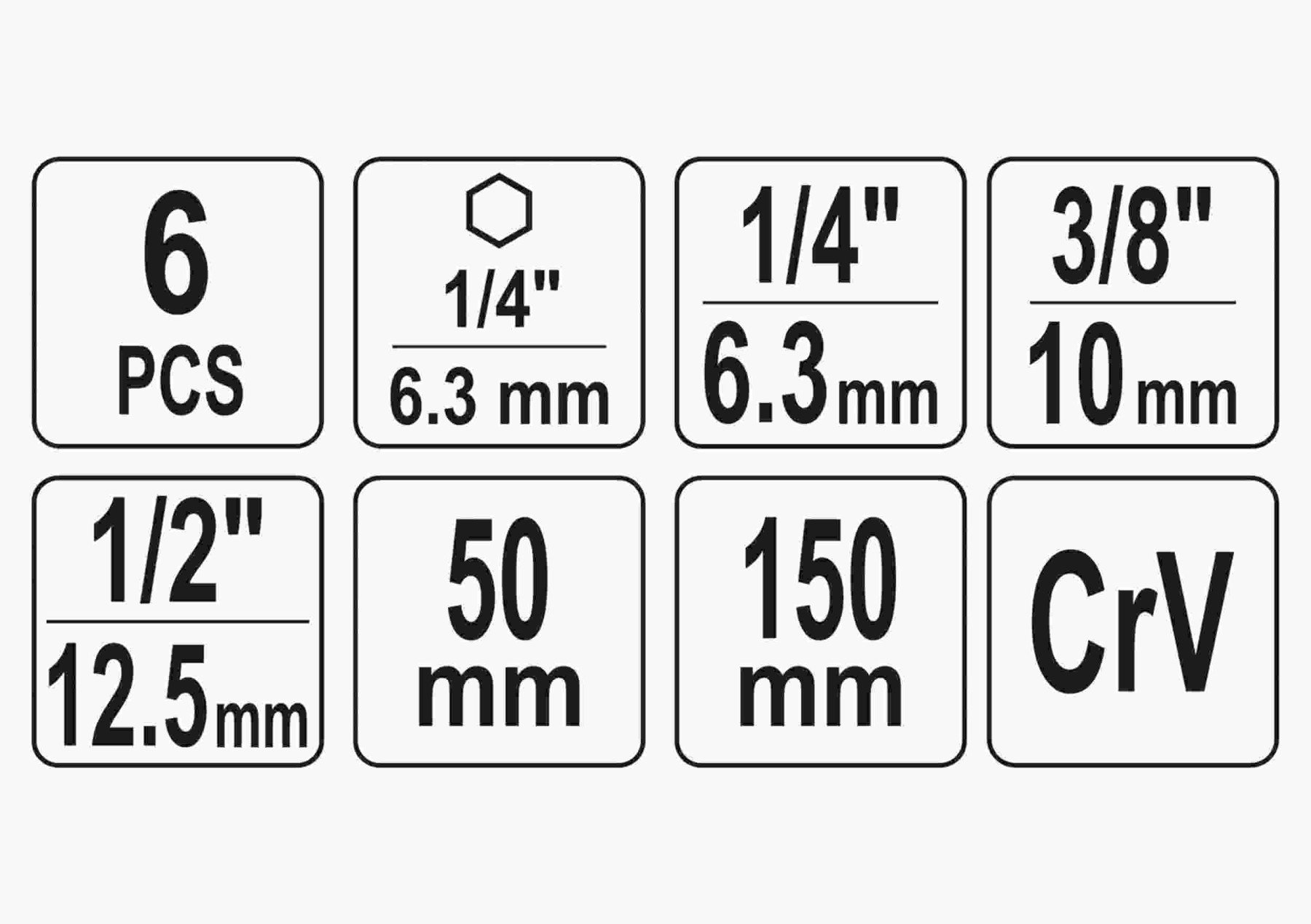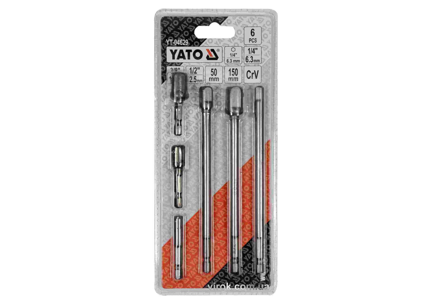 Тримачі-адаптери торцевих головок YATO 1/4" 3/8" 1/2" 50/150 мм HEX-1/4" 6 шт