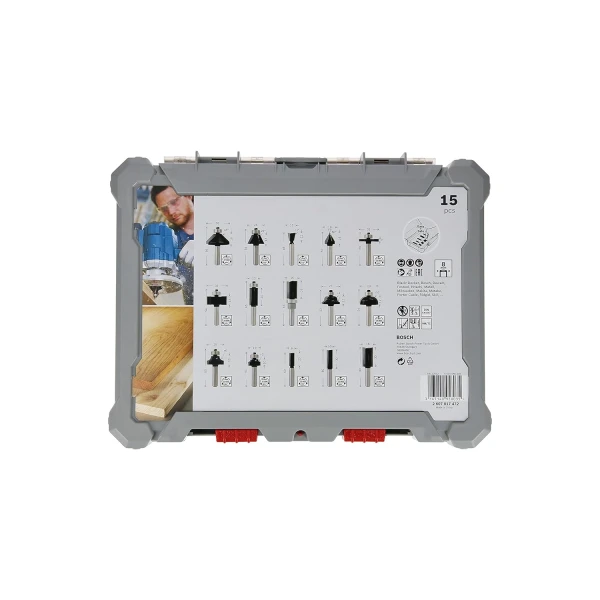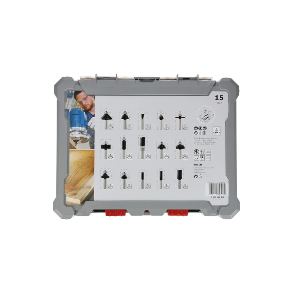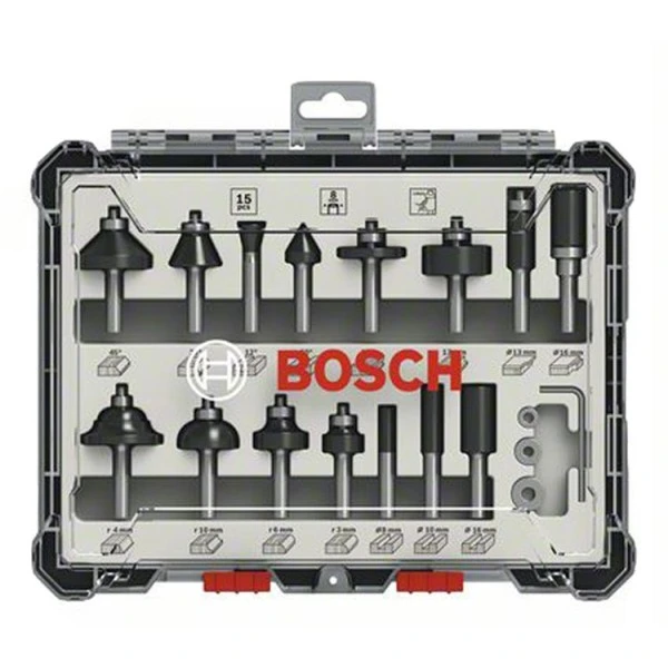Параметры Диаметр, мм 8/ 9/ 10/ 13/ 13/ 16/ 16/ 16/ 25/ 25/ 27/ 29/ 32/ 32/ 35 мм - Кількість предметів в наборі / пакуванні 15 шт. Загальна довжина 49/ 50/ 50/ 50/ 51/ 52/ 54/ 54/ 54/ 55/ 56/ 60/ 60/ 65/ 65 мм Комплектація набір з 15 комбінованих фрез Bosch: фреза для робіт з поверхнею врівень, шаблонна фреза, фреза "ластівчин хвіст", дві фаскові фрези, V-подібна пазова фреза, дискова пазова фреза, фальцева фреза, фреза для фаскової римської калівки, калювальна фреза, дві пазові прямі фрези з двома кромками та пряма пазова з трьома кромками Оброблюваний матеріал дерево Робоча довжина 2/ 4/ 10/ 12/ 12/ 13/ 13/ 13/ 16/ 18/ 20/ 25/ 25/ 30/ 30 мм Хвостовик 8 мм -