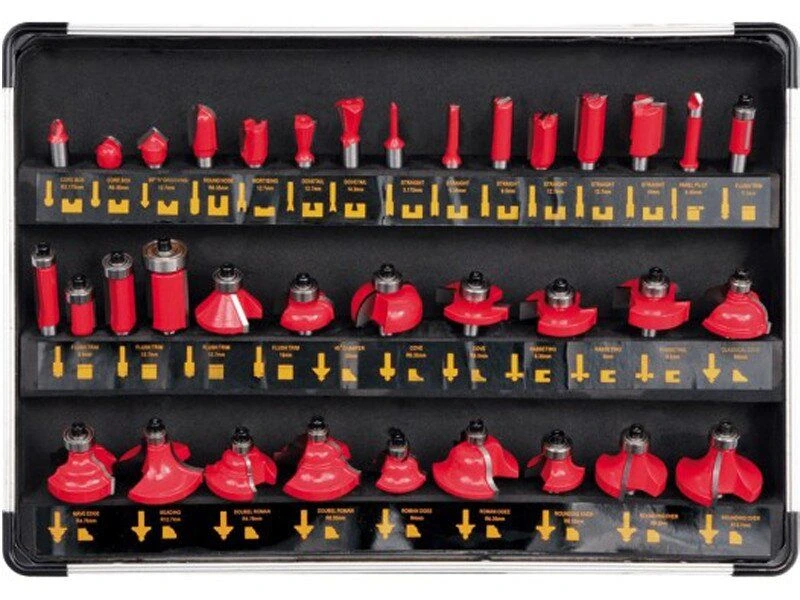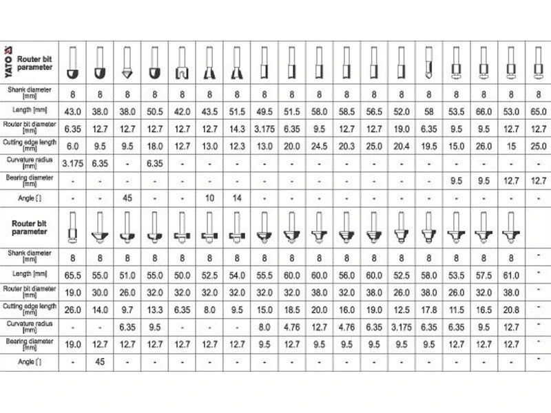 Точно сделанные, высокоскоростные резчики по дереву. Стержень Ø, 8 мм, головки оснащены профилированными режущими пластинами из карбида кремния YG6X. Серебристая пайка, допуск на размеры 0,08 мм. Резцы для обработки кромок оснащены подшипниками для облегчения работы фрезерного станка.