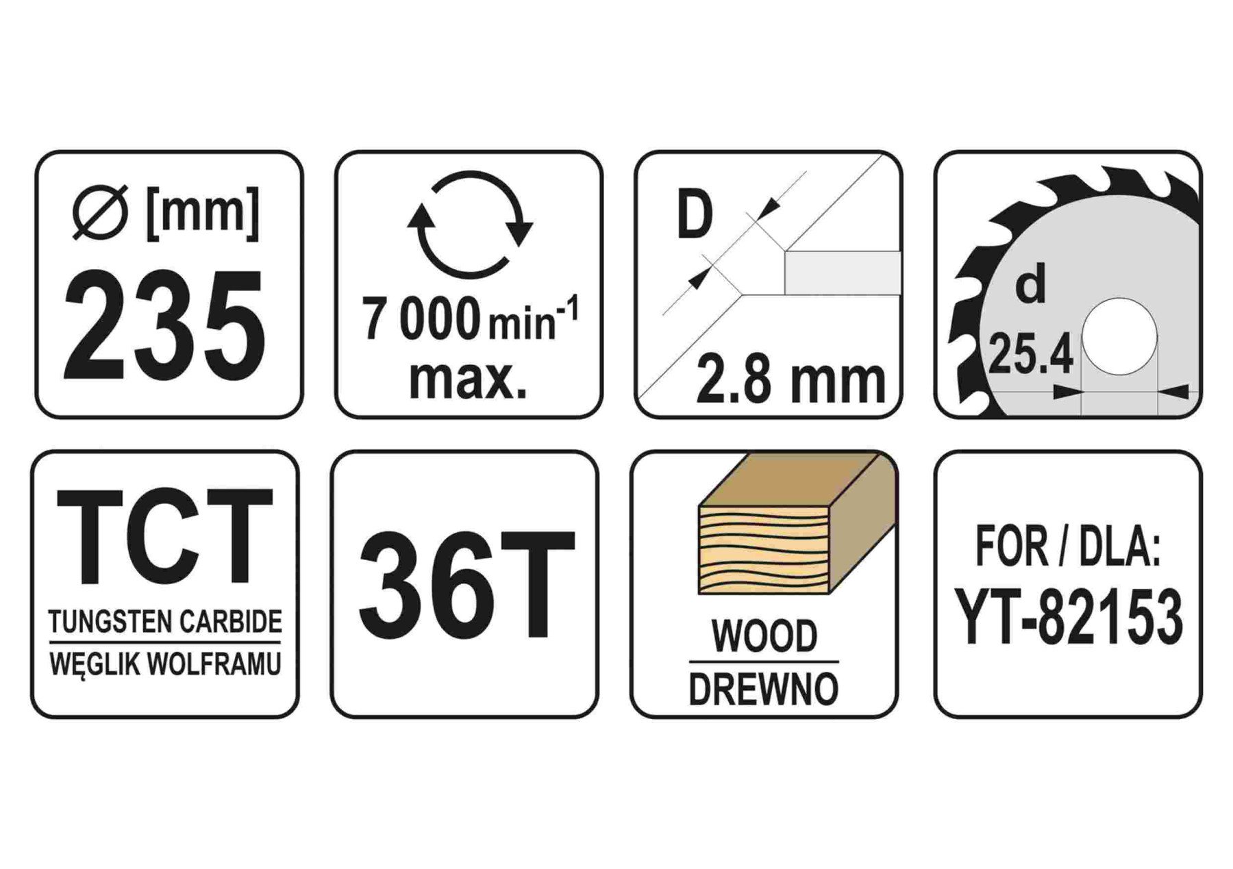 YATO Диск пиляльний победітовий по дереву: 235x25.4x2.8x1.8 мм, 36 зубців, R.P.M до 7000 1/хв