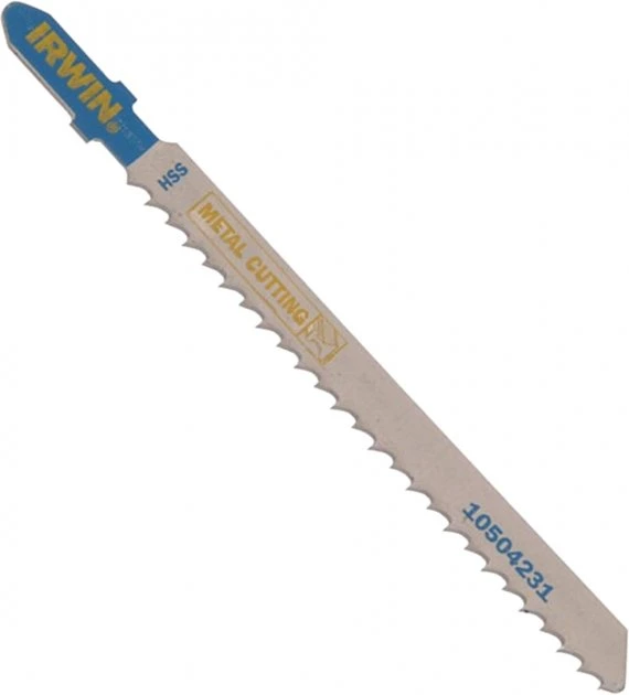 Пилка по металу для електролобзика T-хвостовик 5 шт (100/8/Т127D) Пилка для електролобзика для роботи по металу HSS вальцьовані зубці мають більший термін служби порівняно з аналогами та забезпечують довгий термін служби Матеріал HSS - швидкорізальна сталь для різання металу, алюмінію та кольорового металу Має Т-подібний хвостовик Упаковка: 5 шт