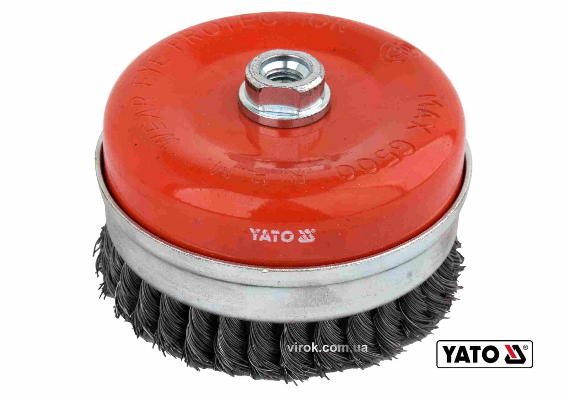 YATO Щітка зачисна зі сталевих плетених дротів "чашка" до КШМ : Ø=125 мм, гайка- М14
