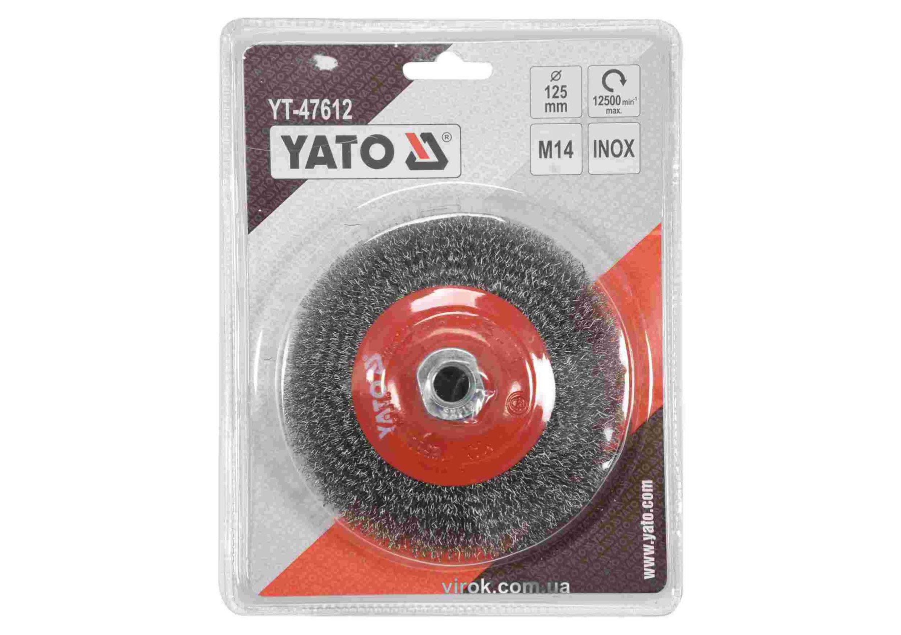 YATO Щітка зачисна з нержавіючої сталі, дискова до КШМ : Ø=125 мм, гайка- М14, 12500 об/хв