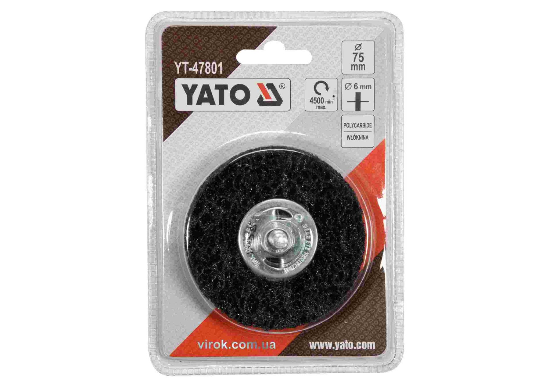YATO Щітка зачисна дискова : Ø=75 мм, зі шпинделем Ø=6 мм. з нетканого волокна, до дрилі