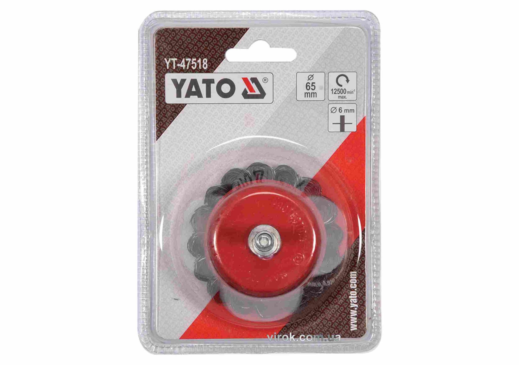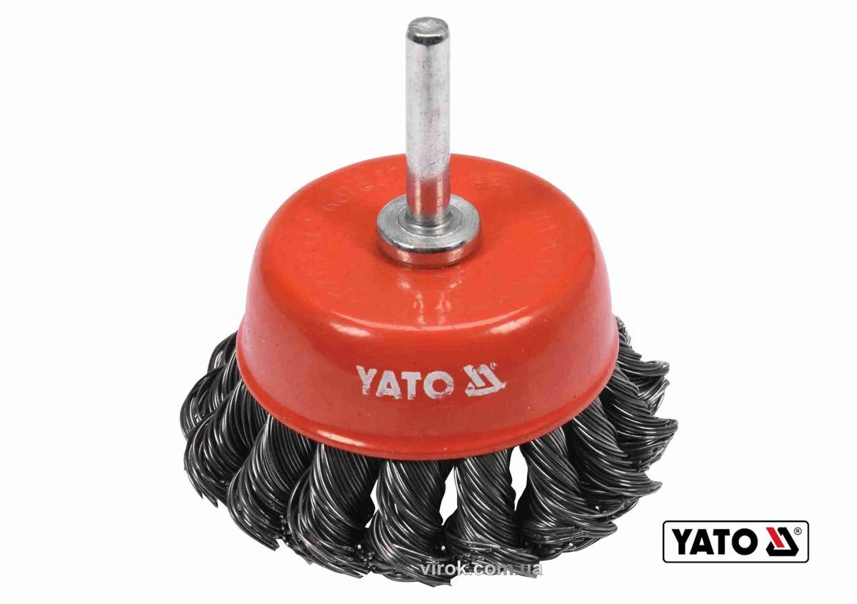 YATO Щітка зачисна зі сталевих плетених дротів "чашка" до дрилі Ø=65 мм, шпиндель Ø=6мм, 12500 об/хв