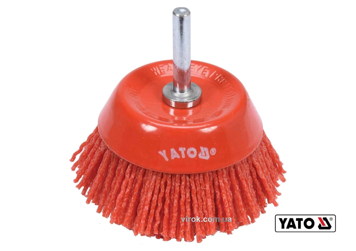 YATO Щітка зачисна з нейлоновим ворсом "чашка", до дрилі : Ø=75 мм, зі шпинделем Ø=6 мм