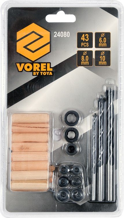 VOREL Засоби для кілкових сполучень по дереву YATO з діаметром 6, 8, 10 мм, набір 43 шт. | 24080
