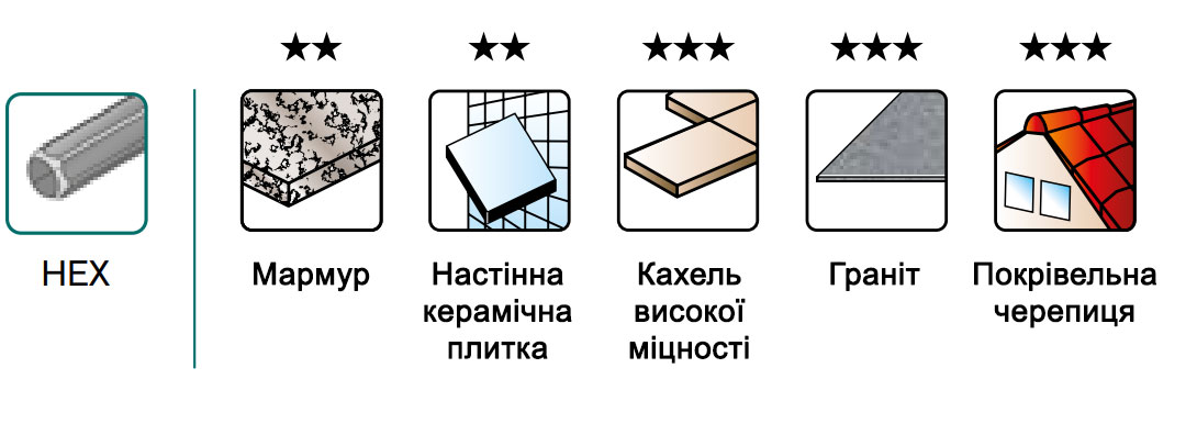 - Максимальний термін служби та відмінний результат при роботі з найтвердішими видами кахелю, черепиці та керамограніту.