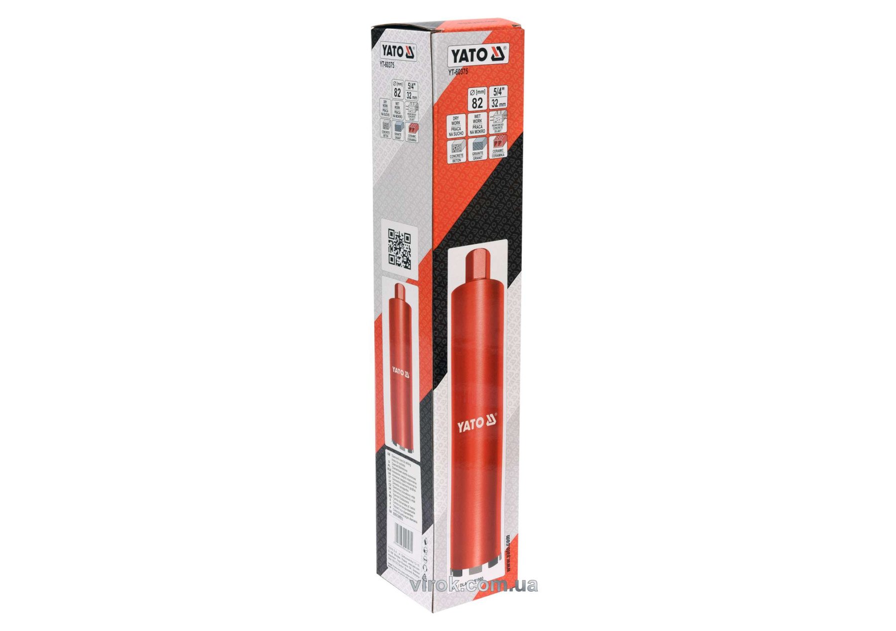 YATO Свердло корончате по каменю, бетону : Ø= 82 мм, l= 430 мм, з алмазн. пругами, хвостовик- М32