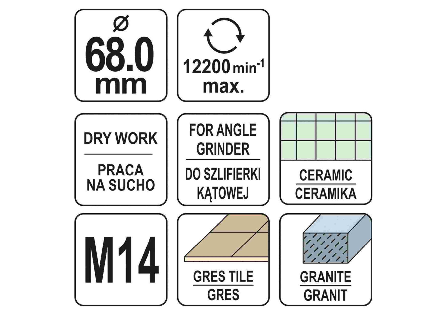 YATO Свердло по кераміці і гресу в сух. і мокр : Ø= 68мм, з алмазним пругом, гвинтове кріплення- М14