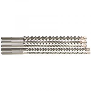 Набір бурів SDS+ M2 450мм (5 шт) Нова агресивна геометрія головки наконечника з трьома додатковими різцями дозволяє швидше свердлити отвори в бетоні, а конічна конструкція шнека зводить силу тертя до мінімуму, завдяки чому свердло MS2 забезпечує дуже високу швидкість свердління. Три гострі додаткові різці. Надають «руйнівний» ефект і створюють мікротріщини в матеріалі, що просвердлюється. До 25% швидше. Центруючий наконечник забезпечує швидке засвердлювання з високою точністю. Запобігає прослизу на гладких поверхнях. Конічна форма шнека, що витончується у напрямку боковини, знижує силу тертя та підвищує швидкість свердління. Завдяки конічній формі шнек ідеально підходить для акумуляторних перфораторів. Збільшена канавка запобігає пошкодженню при ударі, підвищує стійкість до обламування. Також забезпечує повну передачу потужності на наконечник та нижчий рівень вібрації. Збільшені ріжучі кромки. Оптимальна форма кромок запобігає пошкодженню бічних частин наконечника при попаданні на арматуру. Знижує ризик заклинювання свердла при попаданні на арматуру. Збільшений діаметр основного стрижня знижує ймовірність поломки, забезпечуючи ефективнішу передачу потужності та низький рівень вібрації. Вироблено в Німеччині. Комплектація 10/12/14/16/20 x 450 мм Пластикова упаковка