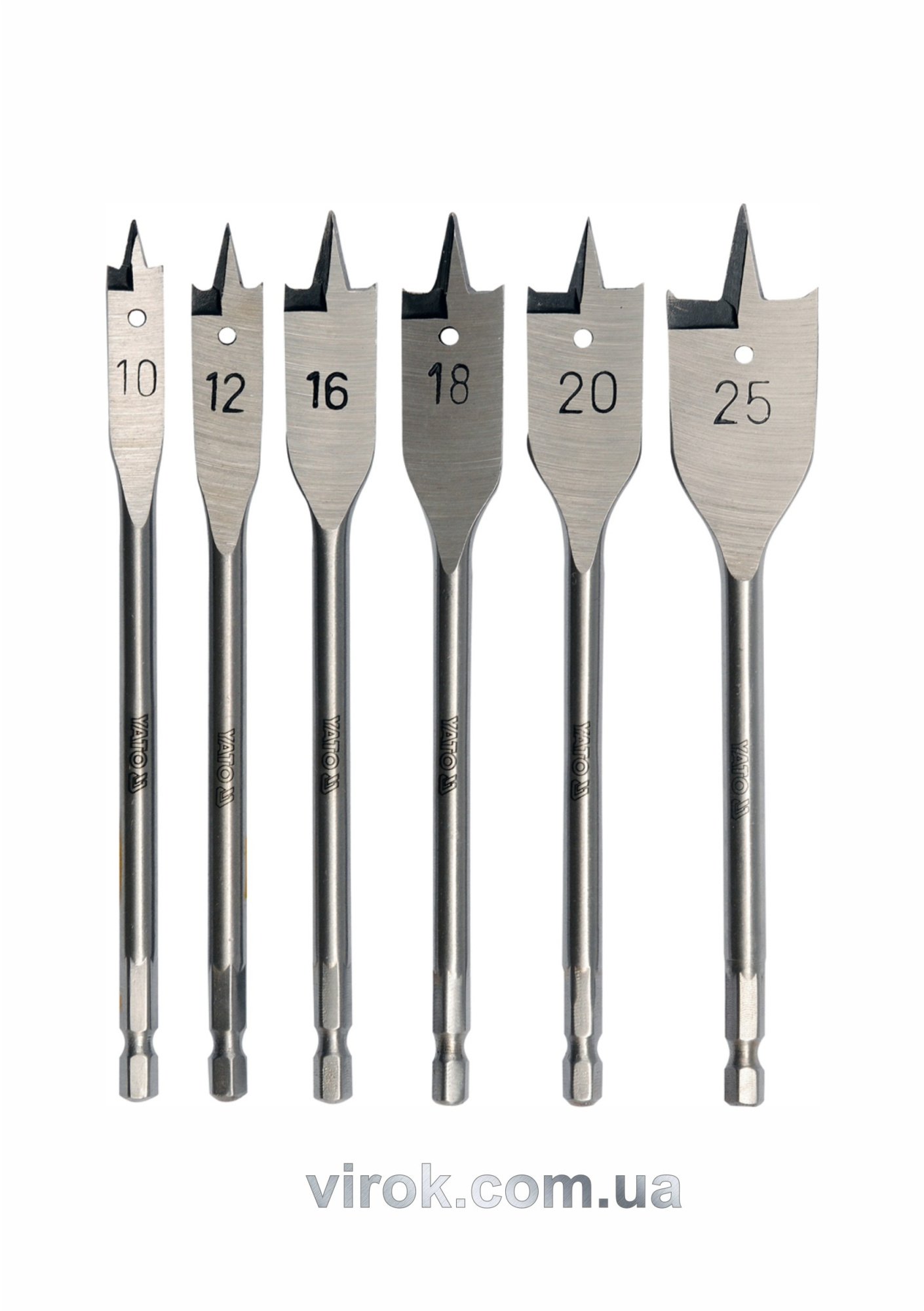 YATO Свердла перові по дереву : 6-гранний хвостик HEX-1/4", Ø= 10-25 мм, L= 152 мм. (Набір/6 Шт.)