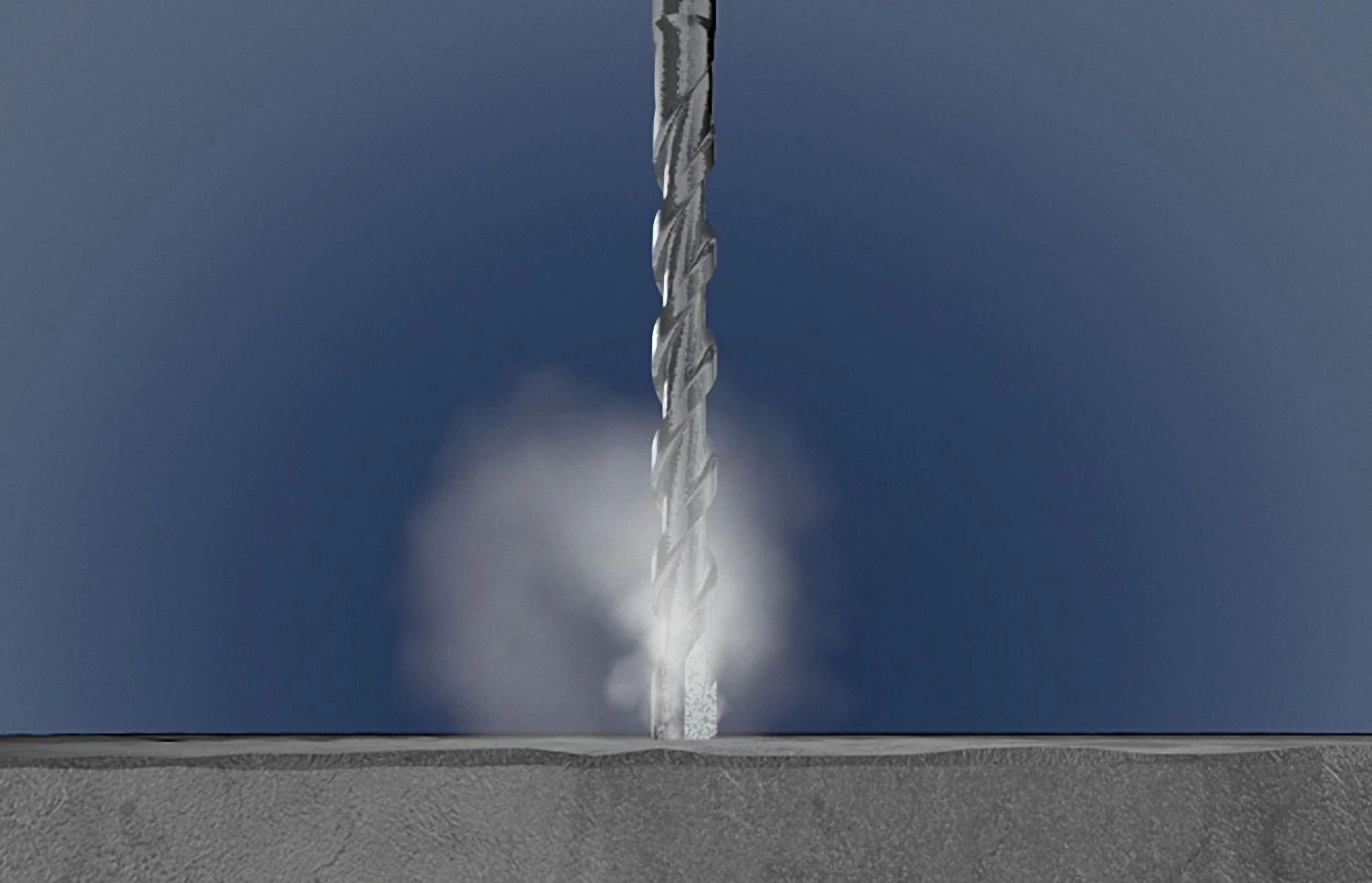 - Увеличенные скосы режущей кромки (+35%) гарантируют, что сверло будет работать наилучшим образом при попадании в арматуру. Это значительно снижает риск возникновения проблем, вызванных заклиниванием сверла.