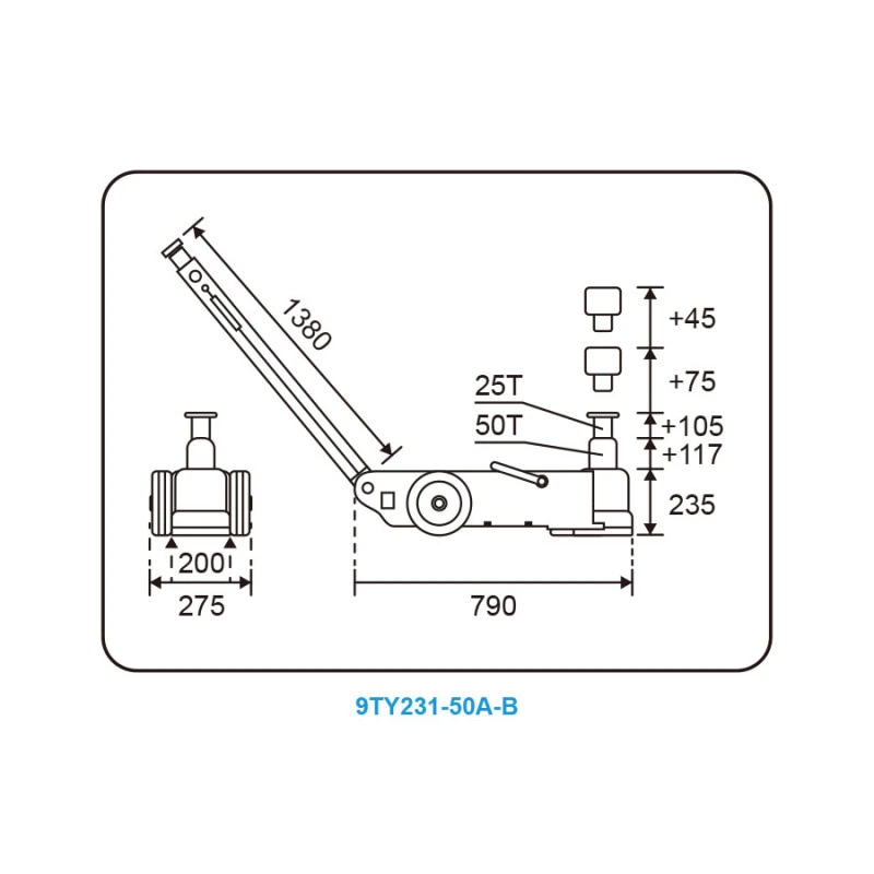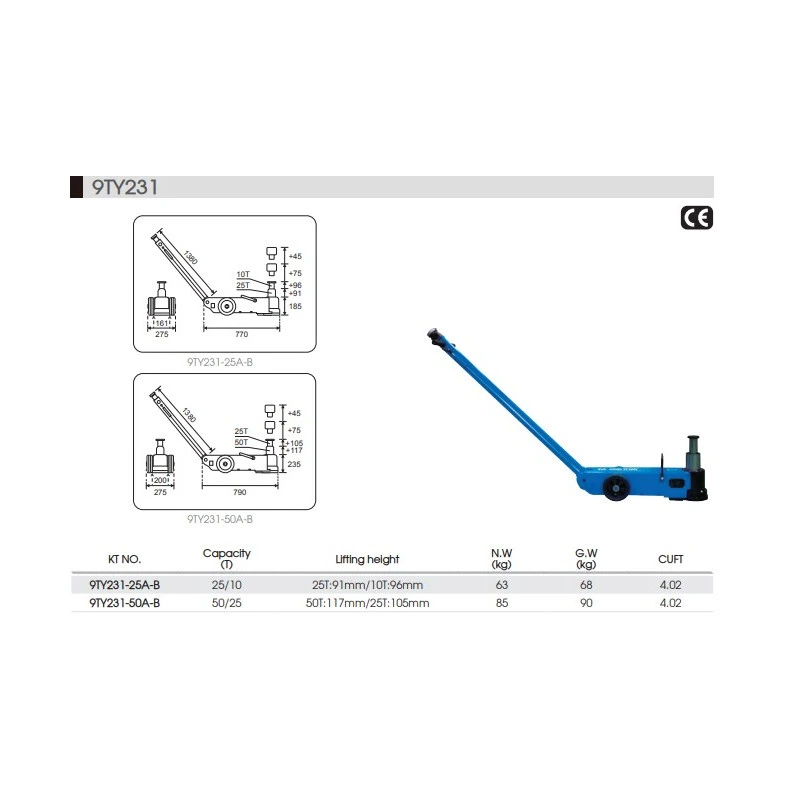 KING TONY Домкрат пневмогідравлічний підкатний вантажопідйомність 50/25 т | 9TY231-50A-B