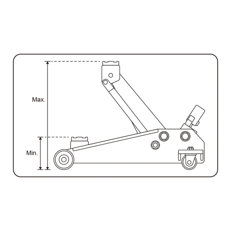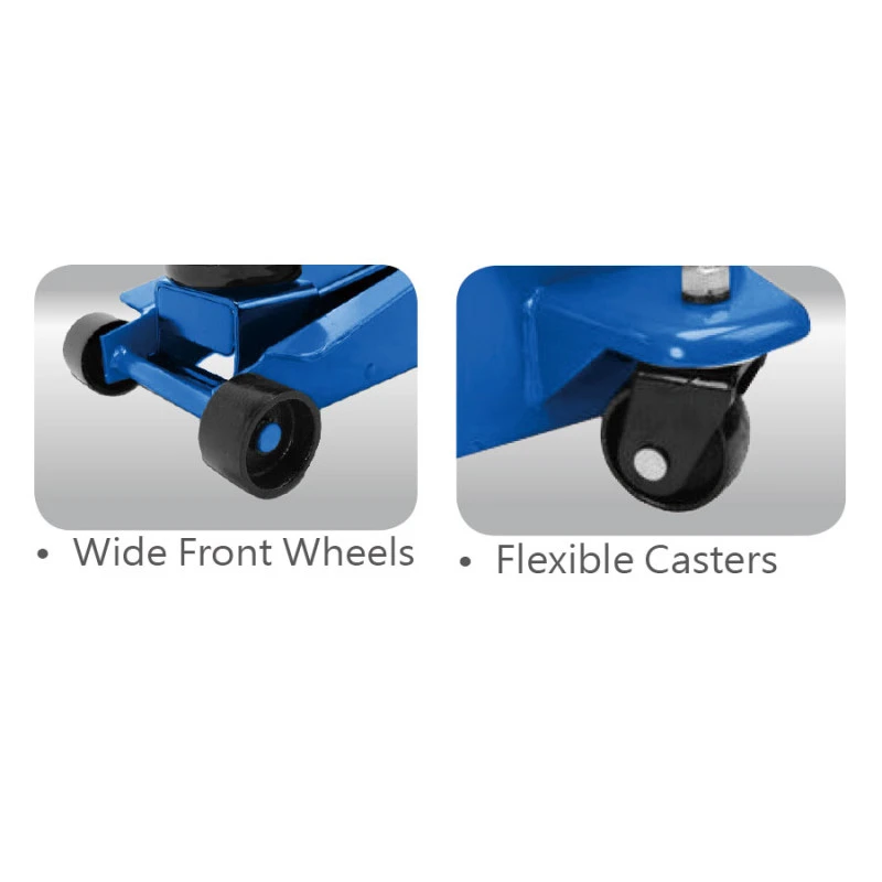 Технічні характеристики підкатного домкрата King Tony (9TY132B-03A-B): · Вантажопідйомність – 3 тонни.· Висота підхвату - 140 мм.· Висота підйому – до 520 мм.· Мобільність – 4 колеса (2 задніх – поворотні). · Вага домкрата у зборі – 38 кг.