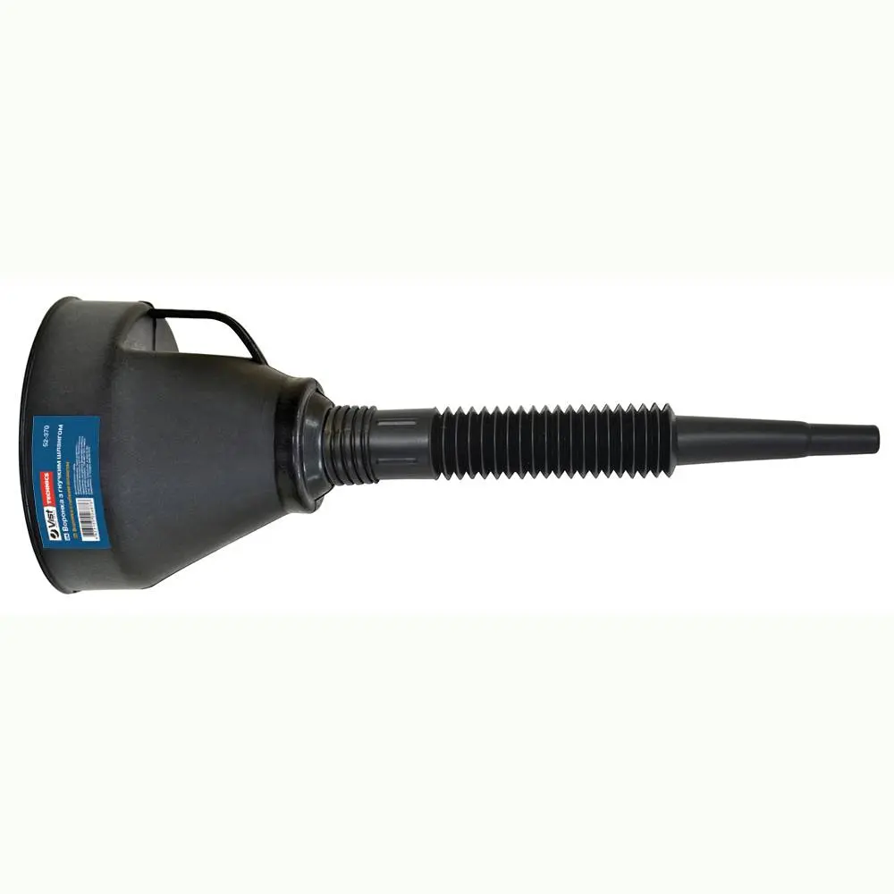 Воронка виготовлена з якісного пластику з фільтруючою сіткою і гнучким шлангом - наконечником для робіт у важкодоступних місцях. Загальна довжина - 360 мм. Діаметр воронки - 140 мм. Використовується для заливки паливно - мастильних матеріалів. У більшості випадків воронки для горючих матеріалів продаються або окремо без спеціально підігнаних за розміром шлангів, або ж у варіанті, коли мова йде про відсутність спеціального фільтра всередині. Дана модифікація включає в себе все це. Легка, компактна при зберіганні та не займає багато місця. Буде незамінною деталлю для автолюбителів.