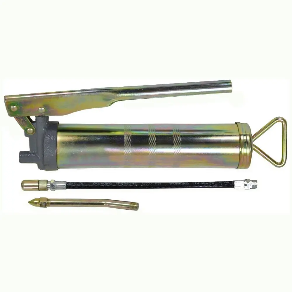Металлическая оцинкованная спринцовка предназначена для подачи масел, технических жидкостей к узлам и деталям автомобиля: коробке передач, картерам мостов, коленчатым валам, клапанам, подшипникам и др. Конструкция спринцовки для заливки масла проста: металлический оцинкованный корпус с поршнем, верхняя и нижняя крышки, а также гибкий шланг, обеспечивает поступление смазочных материалов. Благодаря специальному строению поршня происходит максимально полное опорожнение картриджа. Также в комплекте поставляется гибкий наконечник длиной 240 мм и металлический наконечник длиной 120 мм.