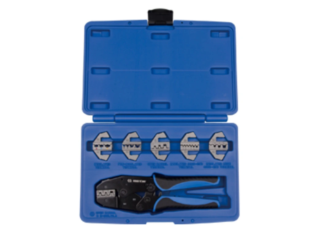 Кримпер храповичний для обтиску ізольованих наконечників призначений для акуратного та швидкого затиску клем. Універсальний ручний інструмент обладнаний шістьма насадками. З відкритим та закритим корпусом, коаксіальний кабель та клеми різних діаметрів для кримпера немає обмежень. Тримачковий механізм ручного інструменту підвищує точність у роботі та зменшує тимчасові витрати користувача. Заміна змінних губок виконується без проблем. Універсальний інструмент передбачає встановлення губок, що не входять до комплекту того ж бренду. Кримпер орієнтований на комерційне використання - станції ТО та автотранспортні підприємства, включаючи аграрний сектор. Інструмент зацікавить електриків будівельних компаній, заводів та домашніх користувачів. Інструмент King Tony поставляється в комплекті в компактному кейсі, що гарантує збереження вмісту. Кримпер можна використовувати в агресивному середовищі. Двокомпонентні накладки на рукоятках стійкі до олій, розчинників, кислот та лугів. Основа кримпера та губки виконані з інструментальної легованої сталі та обіцяють користувачеві безвідмовність у роботі. Довічна гарантія виробника – приємний подарунок покупцю. Особливості • Храповичний (тріскачковий) механізм для зручності роботи • 6 видів губок для різного виду обтискних робіт • Швидкий та зручний механізм заміни змінних губок • Ізольовані рукоятки • Пластиковий кейс Що входить в комплект: Кримпер храповичний: 1 шт Губки у комплекті: А: Для ізольованих клем: 0,5 – 6 мм² B: Для не ізольованих клем: 1,5 – 10 мм² З: Для клем із відкритим корпусом: 0,5 – 6 мм² D: Для малих клем «cordend»: 0,5 – 4 мм² E: Для клем RG (коаксильний кабель) F: Для великих клем «cordend»: 6 – 16 мм²